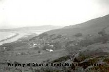 From a rather high position we get a view of the hillside with a scattering of houses, beyond which lies Bolinas Bay.