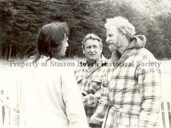 Luigi Alfano stands between Bruce Dern and the director of the film "On The Edge," during its filming in Stinson Beach Park. Luigi worked as assistant director. Many locals were extras and the film was based on the Dipsea Race.
