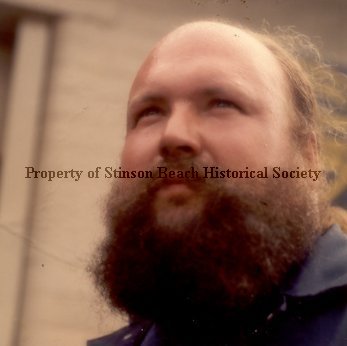 An original color print photographic of the face of Chris Knowles who worked at the Stinson Beach Chevron Station.