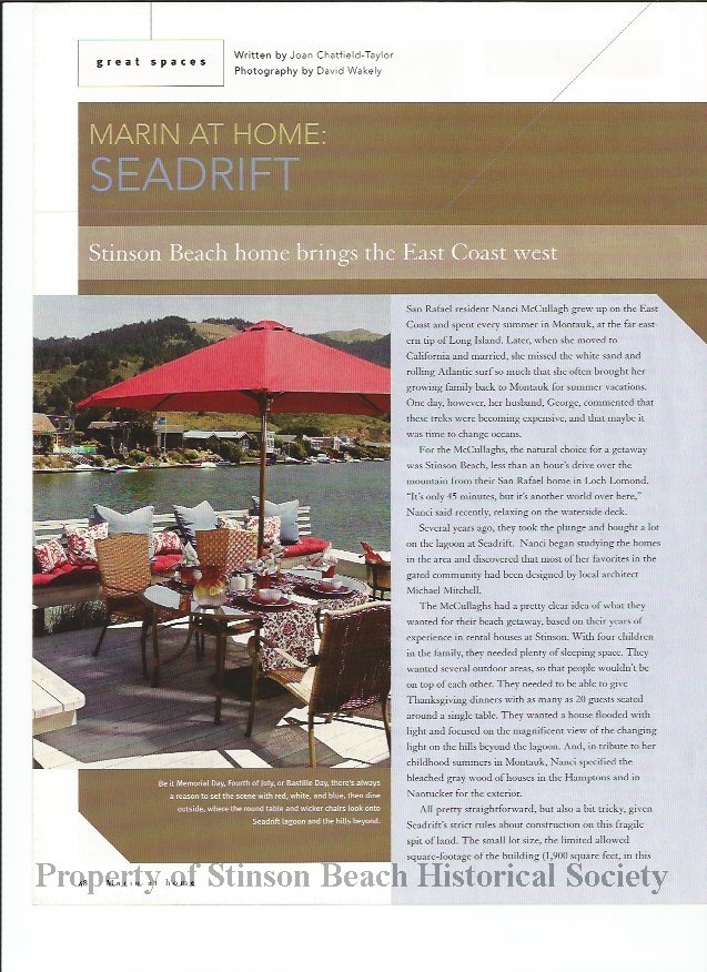 4 pages, letter size, colored photograph from Marin at Home magazine.