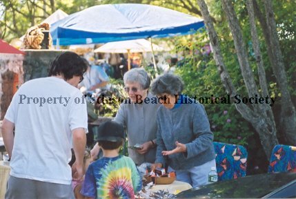 object ID numbers 2004-117-01 through 2004-117-30 are color snap shots prints of photographs taken during 2003 Cuisine on Green, a Community Center fundraising event. It includes the booths of community organizations and the individuals who had their booths and who happened to be there. Most of the people are identified and their names appear on the titles.