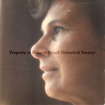 The original color photograph face of Conradi, Gloria. A long time resident of Stinson Beach who later moved to Petaluma. She worked at the Post Office and eventually promoted to Post Master and transfered to Petaluma Post Office. She was very active in community activities, church, Parent Teacher Club, and West Marin Community Chorus and Orchestra. She was the organist at the local church and continued in that capacity even after she moved to Petaluma. She and her husband, Fred (see 2002-182), with a son and a daughter lived in a Stinson Beach Ranch house within the GGNRA. (ta)