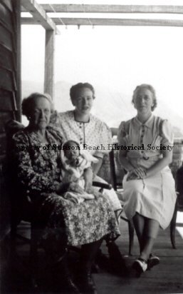 This is a photo of baby Charles upton with his mother, grandmother and great grandmother. They are on the porch of the cottage called "Laugh-a-lot".