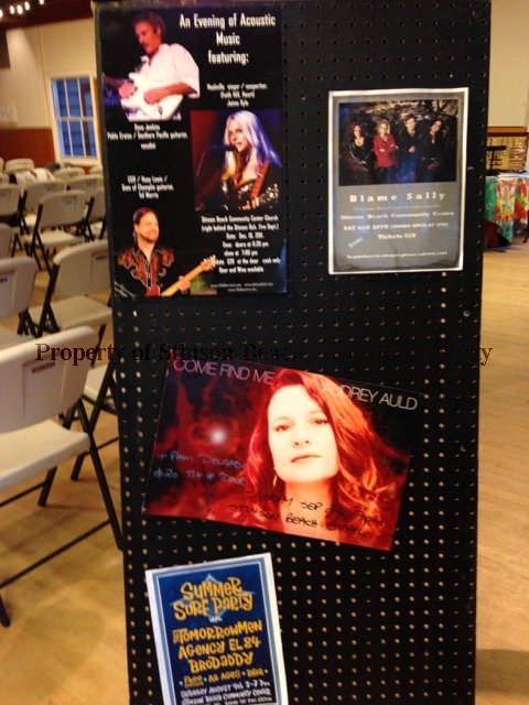 46 color digital photos taken during SBHS Fundraising event, "Making Waves, The Stinson Beach Music Scene 1960s to Present" held at Community Center on 9/12/2015. Includes displays of 2016A-100 materials and the people at the event including performances on the stage.