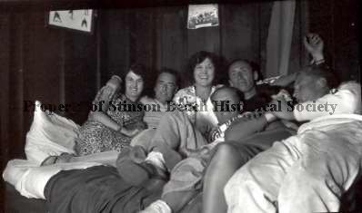 The same group of people on the same bed as in 1999-317P. They are more snuggled together now. The single fellow is sitting up a bit more. And the smoochers only have eyes for each other.
