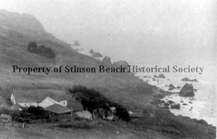 Although this photograph is identified as an early Stinson Beach scene it doesn't look like any vista of Stinson Beach. It appears to be Slide Ranch, located off Highway One a few miles South of Stinson Beach.