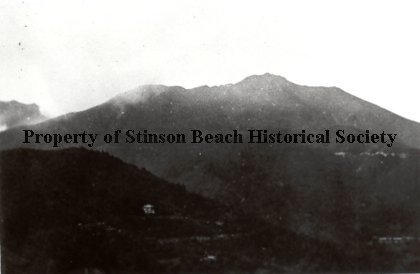 A dark, unclear B&W image of Mount Tamalpais with scatterings of what appears to be snow.