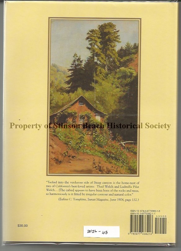 This is a biography of the California painter who resided in Steep Ravine with his painter wife. It includes 22 reproductions of their paintings and 3 photographs: Thaddeus, Ludmilla, and Thaddeus with his friend, John Twachtman. Thaddeus was born in Indiana in 1844; Ludmilla was born in New York in 1867. They were married in 1883. Book traces their life to become painters of pastoral California paintings.